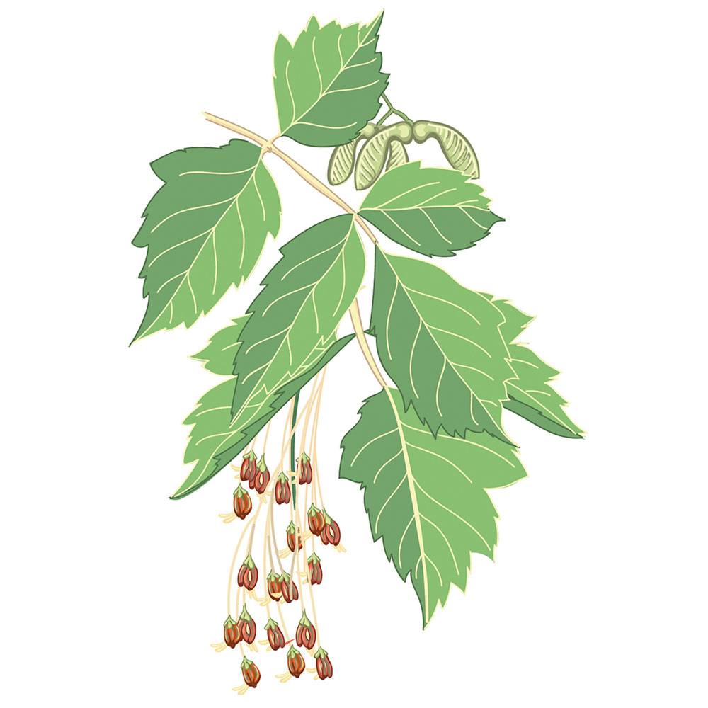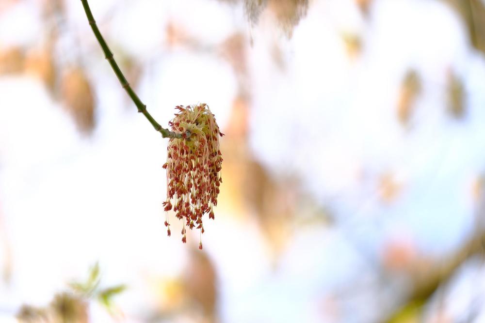 Es un árbol dioico, es decir, los ejemplares femeninos y masculinos se encuentran en pies separados. Florecen en primavera antes de que las hojas hayan brotado y quizá te cueste distinguir unos de otros por el tipo de flor, ya que al igual que en otras especies, las flores que poliniza el viento suelen carecer de pétalos. Saldrás de dudas cuando veas los frutos: dos semillas pegadas con dos alas que forman una v invertida. Una disámara típica de todos los arces, pero que en esta especie se encuentra en un ángulo de unos 60º. Compárala con la del arce campestre que encontrarás también en este parque.