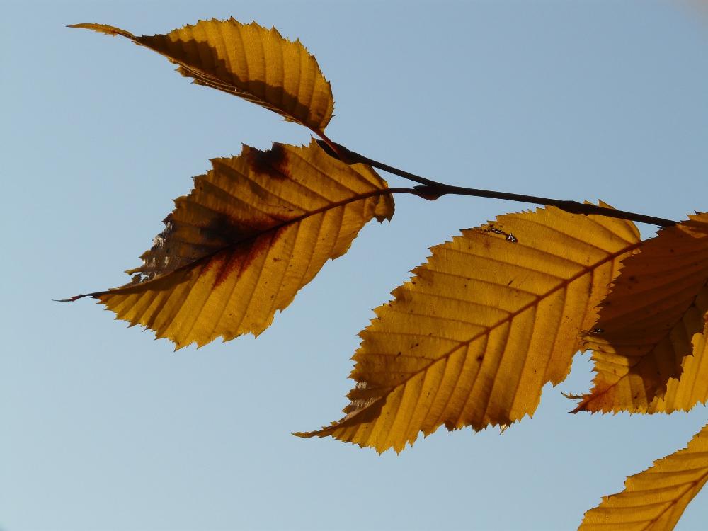 Seguramente le encuentres cierto parecido con el haya, con la que puede llegar a confundirse, pero los nervios en las hojas están mucho más marcados y la corteza no es tan lisa. Quizá te recuerden también a las hojas del olmo, pero las del carpe son simétricas en la base. Lo que los diferencia claramente de otros árboles son los frutos alados, que verás colgar de sus ramas en otoño.