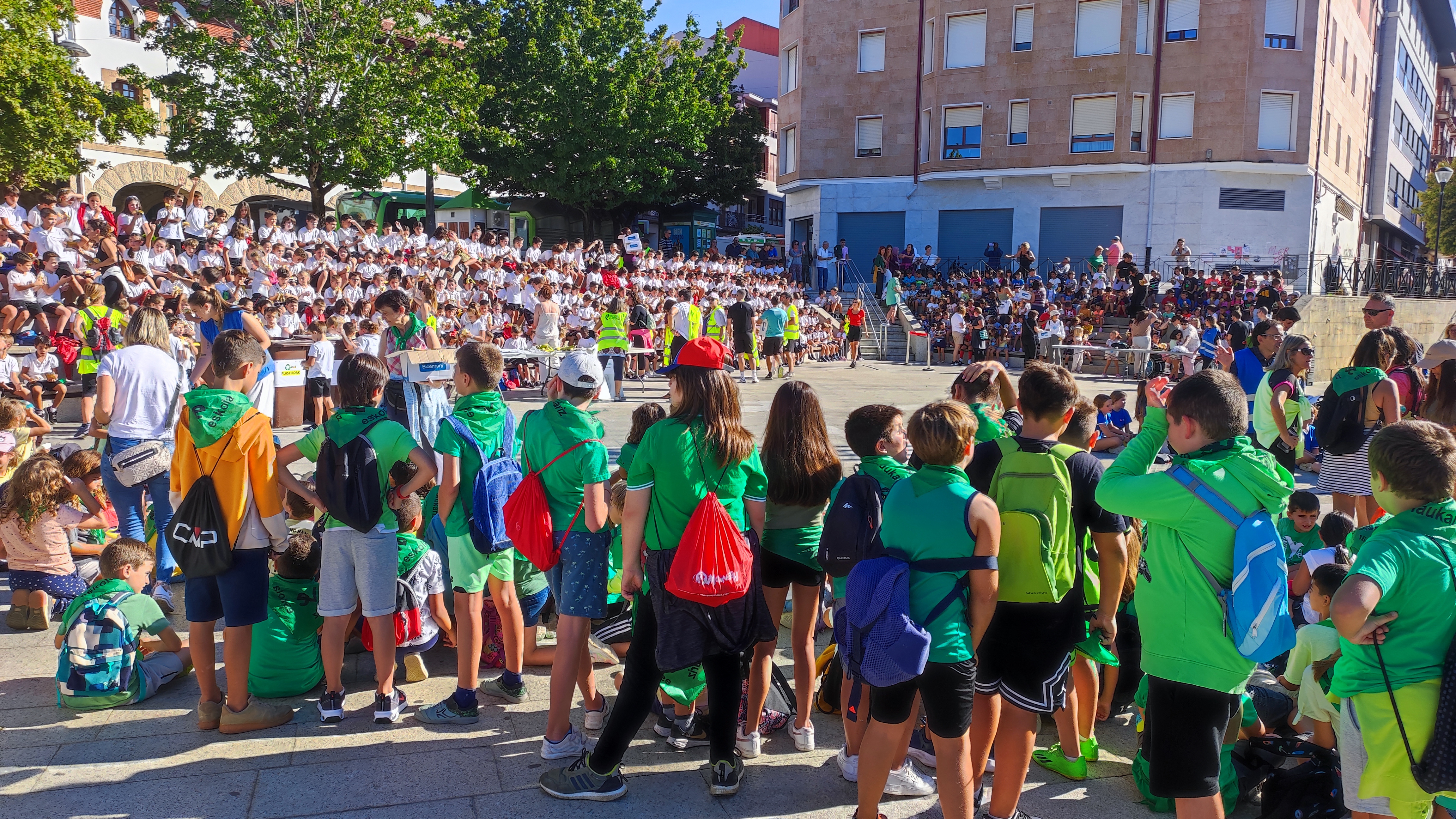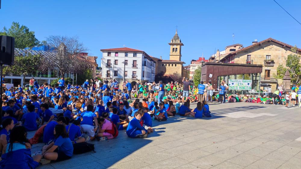 De esta manera, el acto de hoy ha servido de bienvenida a la Agenda escolar 2030. Así, el alumnado, desde los 5 años de educación infantil hasta 6º de Educación Primaria, tras acudir como de costumbre a clase, ha partido de su centro escolar hasta el casco urbano de Mungia, concretamente hasta la plaza Matxin, donde se han reunido con todo el alumnado de otros centros. Posteriormente, han tomado un almuerzo saludable, para después estar con los responsables políticos del Ayuntamiento, quienes les han dado la bienvenida.