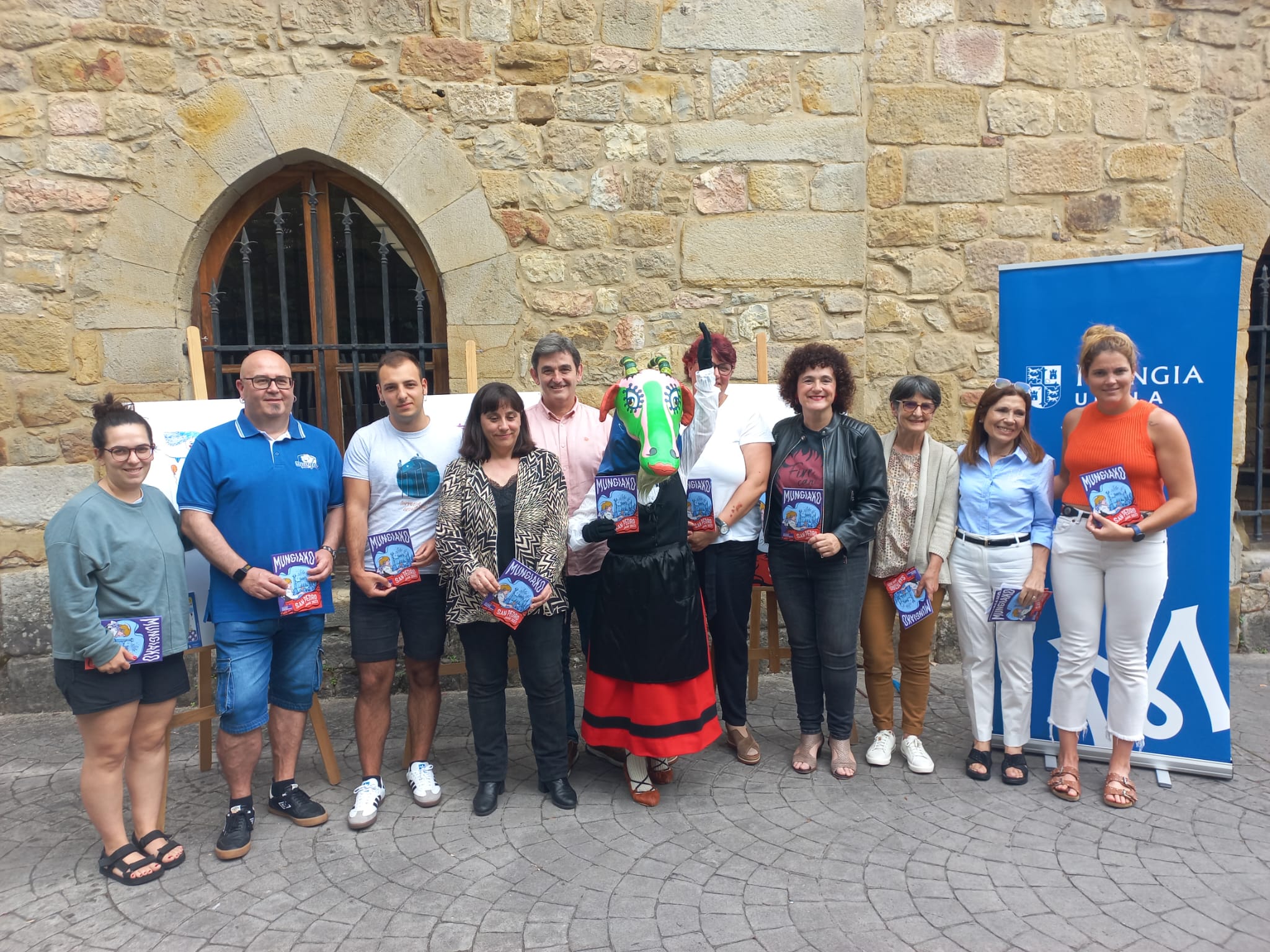 -En el acto celebrado hoy en Torrebillela, el alcalde en funciones de Mungia, Ager Izagirre, ha presentado el programa de fiestas “San Pedro Jaiak 2023” junto a los miembros que conforman la comisión de fiestas y Mari Jata