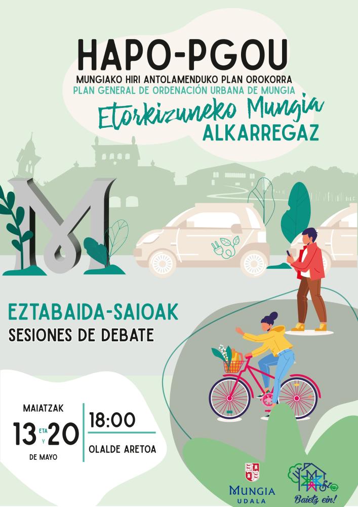 -Los días 13 y 20 de mayo, a las 18:00 horas, las y los mungiarras podrán participar en las sesiones de debate organizadas por el Ayuntamiento. Asimismo, también podrán realizar consultas al equipo redactor los días 13, 20 y 28 de mayo