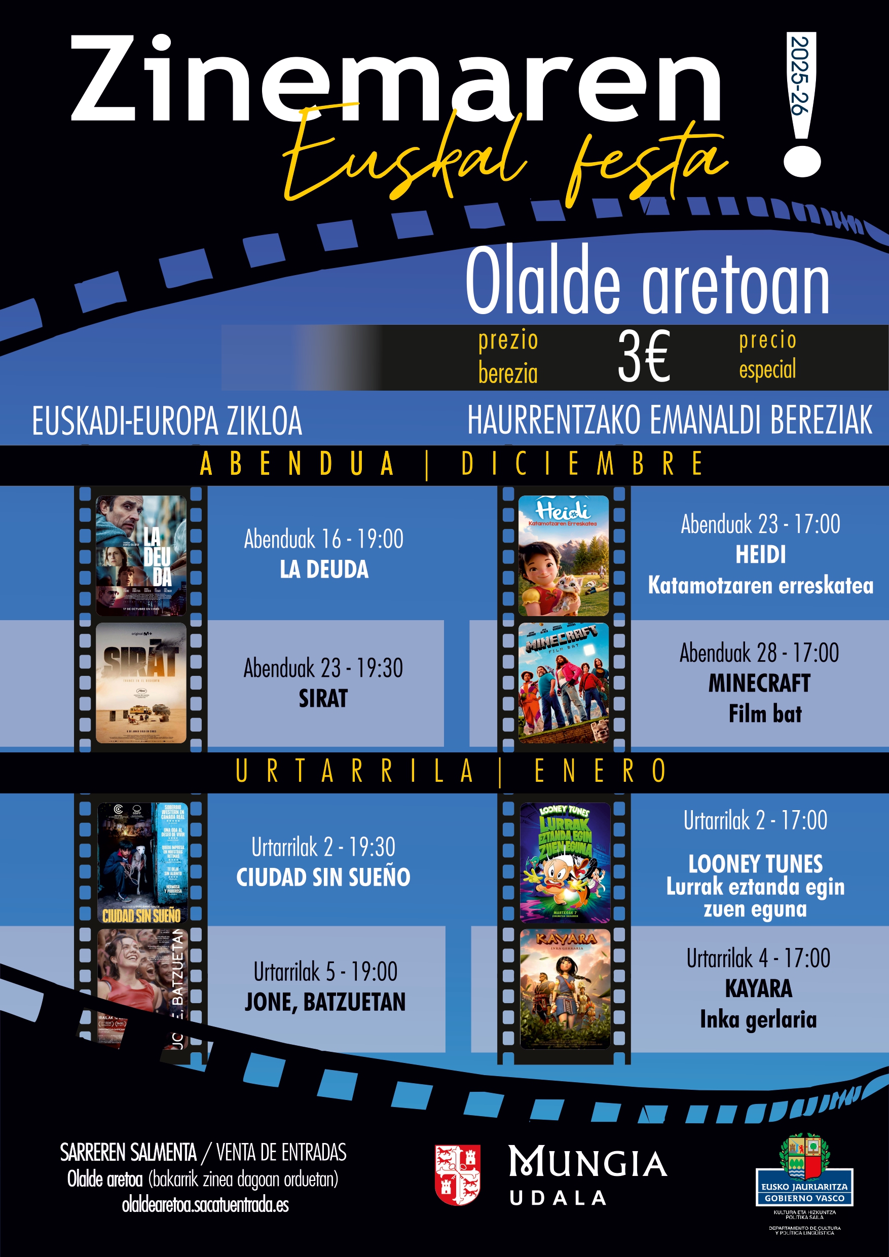 Desde hoy, 16 de diciembre, hasta el 5 de enero. El precio de las entradas será de 3 € (precio especial) y se podrán adquirir en Olalde Aretoa.