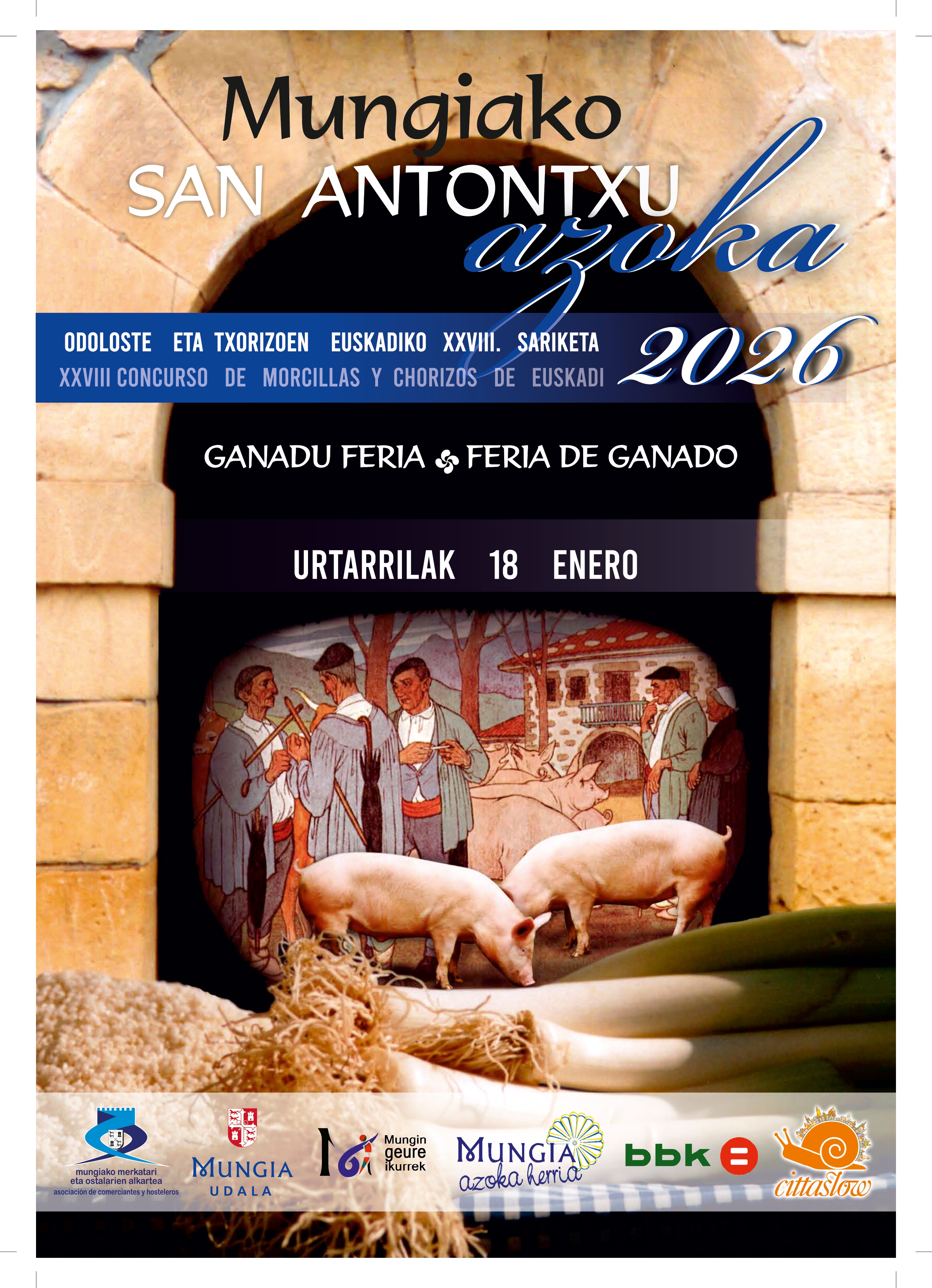 Mungia se prepara para vivir uno de los fines de semana más especiales del año con la celebración de San Antontxu, que en esta edición coincidirá en fin de semana junto con el Lapikoko Eguna, dando lugar a tres jornadas llenas de actividad, tradición y ambiente festivo. El Ayuntamiento de Mungia, en colaboración con las asociaciones locales, ha organizado un programa diverso y pensado para todos los públicos, que se desarrollará los días 16, 17 y 18 de enero, con propuestas como la tradicional feria de ganado de San Antontxu, la XXVIII edición del Concurso de Chorizos y Morcillas y los populares partidos de pelota.