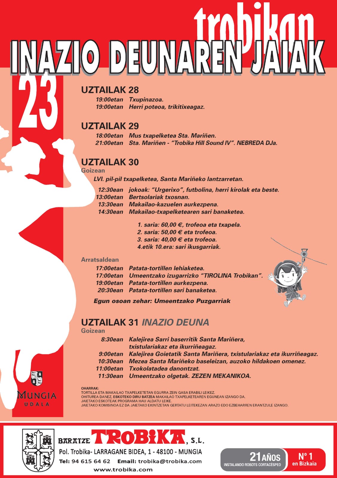 Fecha 29 julio 2023 Compartir 28, 29, 30 Y 31 de julio INAZIO DEUNAREN JAIAK! 28, 29, 30 Y 31 de julio 📍 Trobika auzoan