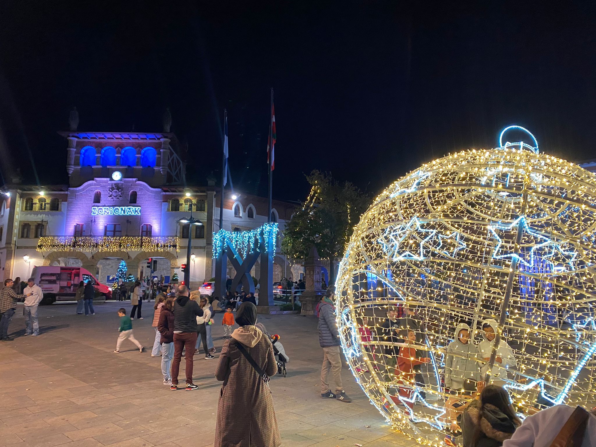 Como novedad, este año destaca la instalación de una espectacular bola navideña de 4 metros de diámetro en la plaza Matxin, que permitirá a las y los visitantes caminar a través de ella y disfrutar de una experiencia mágica.