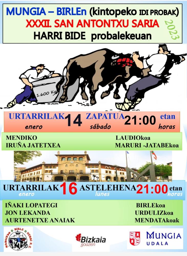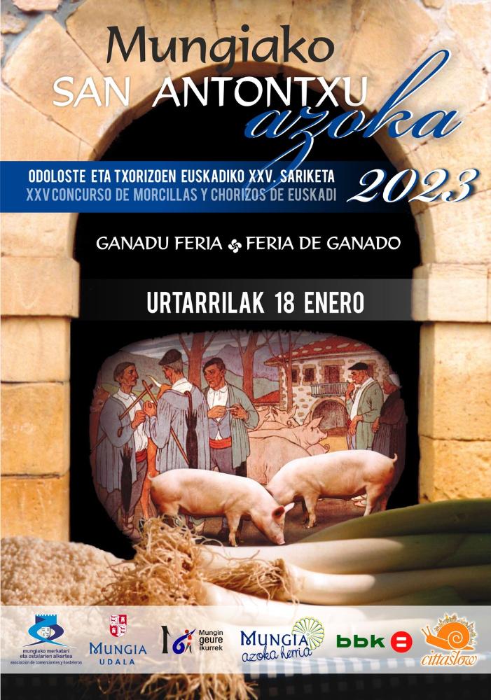 El 18 de enero la Gran feria de San Antontxu vuelve a Mungia con exhibiciones de ganado, animales, productos artesanos, plantas y frutas, concurso de Euskadi de chorizos y morcillas, etc. Será un día cargado de distintas formas de entretenimiento amenizado por Gure Ametsa Txistulari Taldea, Trikitixas y la Kalejira de Amilotx Dantza Taldea. A las 11:30 se presentarán las razas de la exposición de ganado con explicaciones acerca de sus características. También habrá exposición para su venta de maquinaria agrícola y de jardinería, de árboles frutales, ornamentales y autóctonos, así como herramientas para la agricultura. Cabe destacar que los puestos de venta de producto agroalimentarios y txosnas serán 95, que se distribuirán en 60 expositores procedentes mayoritariamente de Bizkaia, pero con representantes de Álava, Gipuzkoa, Navarra e Iparralde.