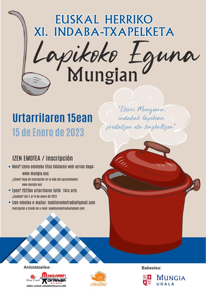 De esta manera, la programación arrancará el 14 de enero con la celebración de las pruebas de bueyes, que se cerrarán el 16 con la entrega del premio San Antontxu. A su vez, DJ Peio, DJ Blessive y DJ Txurru amenizarán la tarde antes del espectáculo de danza 'Sucesos' de la Compañía Kukai. Otra de las actividades habituales de estas fechas que también regresa este año, es el Lapikoko Eguna que se celebrará el 15 de enero. La XI edición del concurso, organizado por la Cofradía de la Makila en colaboración con el Ayuntamiento de Mungia, se llevará a cabo en la Plaza Matxin y en la Plaza de los Fueros. Los y las participantes, además de no poder usar pucheras y ollas rápidas, solo podrán utilizar los siguientes ingredientes: alubia roja, (tipo tolosana, negra o pinta) patatas, verduras, incluido el pimiento choricero, tocino, costilla y chorizo. Las valoraciones y el reparto de premios tendrán lugar por la tarde. Este evento estará amenizado por la Fanfarria Txikuri.