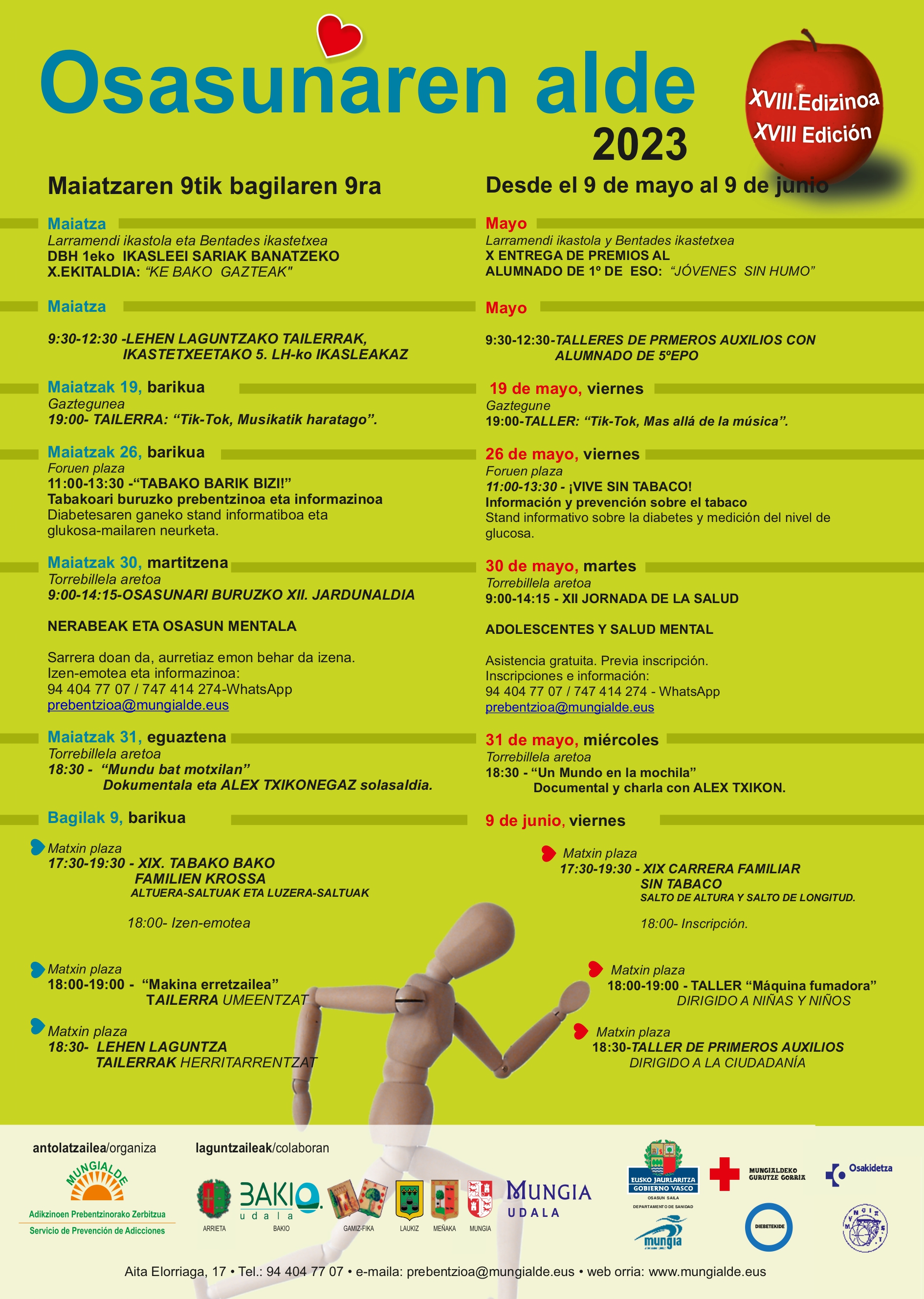 El programa de la XVIII edición “OSASUNAREN ALDE” se puede consultar en la página web de la Mancomunidad: www.mungialde.eus.