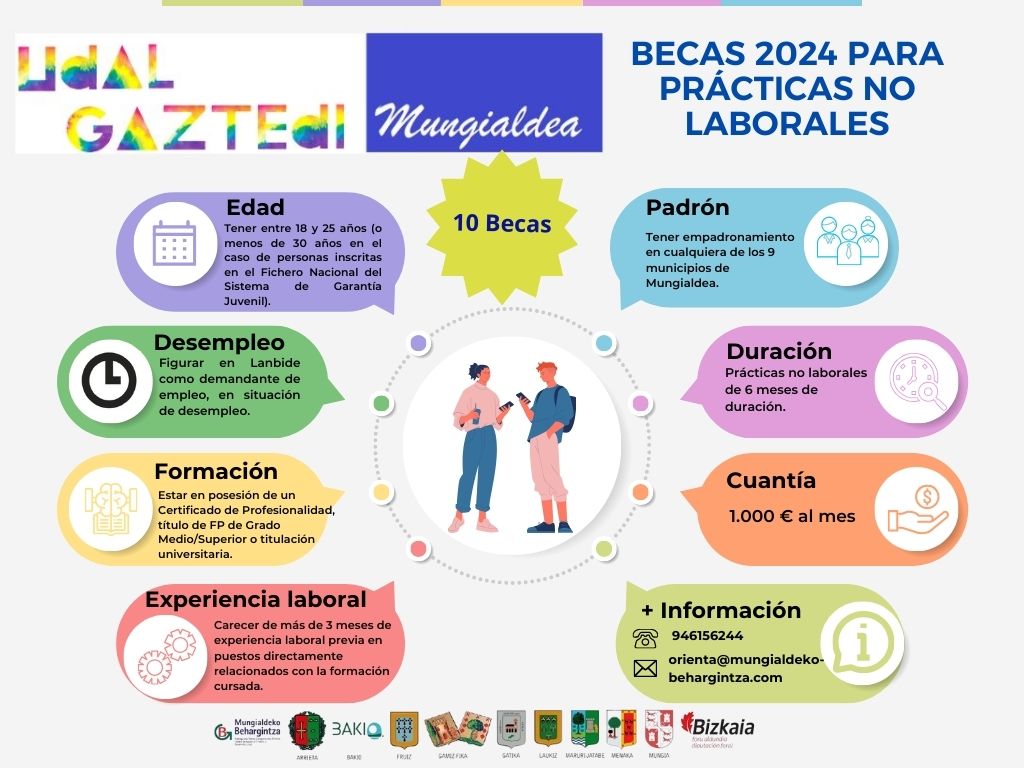 Udal Gaztedi Mungialdea, programa dirigido a jóvenes de entre 16 y 30 años de la comarca de Mungialdea, y cofinanciado por Diputación Foral de Bizkaia, en colaboración con los Ayuntamientos de Arrieta, Bakio, Fruiz, Gamiz-Fika, Gatika, Laukiz, Maruri Jatabe, Meñaka y Mungia, e impulsado por la agencia de colocación Mungialdeko Behargintza del Consistorio mungiarra, vuelve otro año más con el objetivo de facilitar la incorporación al mercado laboral.
