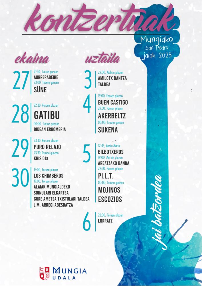 Mungiako Udalak ekainaren 28tik uztailaren 6ra ospatuko diren 2025eko San Pedro Jaietako egitaraua aurkeztu du gaur, Euskal Pizkunde Etorbidean egindako prentsaurreko batean. Bertan izan dira Alaitz Erkoreka alkatea, Idurre Urresti Kultura zinegotzia, Rafa Rueda PI L.T. taldeko abeslaria, Jai Batzordeko ordezkariak eta Marijata. Alaitz Erkorekak Mungiara hurbiltzeko deia egin du, eta adierazi duenez "San Pedro jaiek gure nortasunaren onena islatzen dute: gure sustraiak, gure historia, gure bizitzeko eta Mungia sentitzeko modu paregabea. Jai Batzordearen lanari esker, aurten jai-programa handi bat dugu, zure adina edo gustuak edozein direla ere, errespetuz eta arduraz gozatzeko pentsatua. Era berean, eskerrak eman nahi dizkiet jai hauek posible egiten dituzuen pertsona, erakunde, elkarte eta udal langile guztiei".