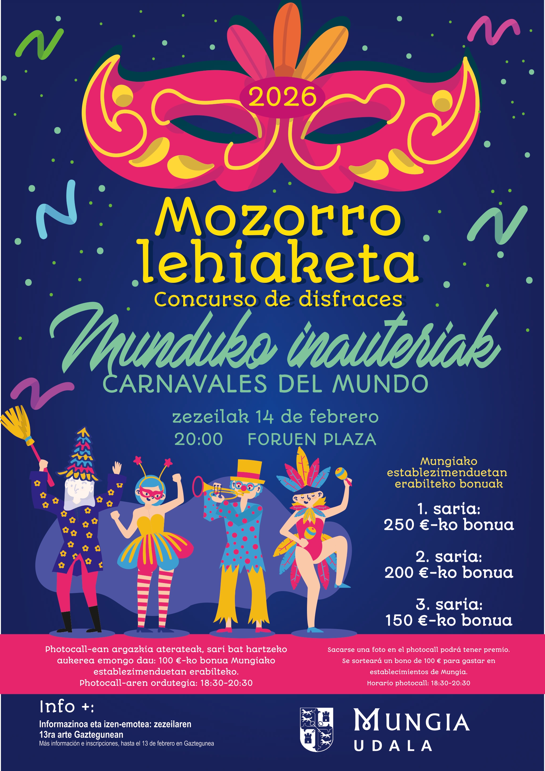 Otsailaren 14an, inauteriekin batera, mozorro lehiaketa egingo da Mungian. Aurten, gaia "Munduko Inauteriak" izango da.