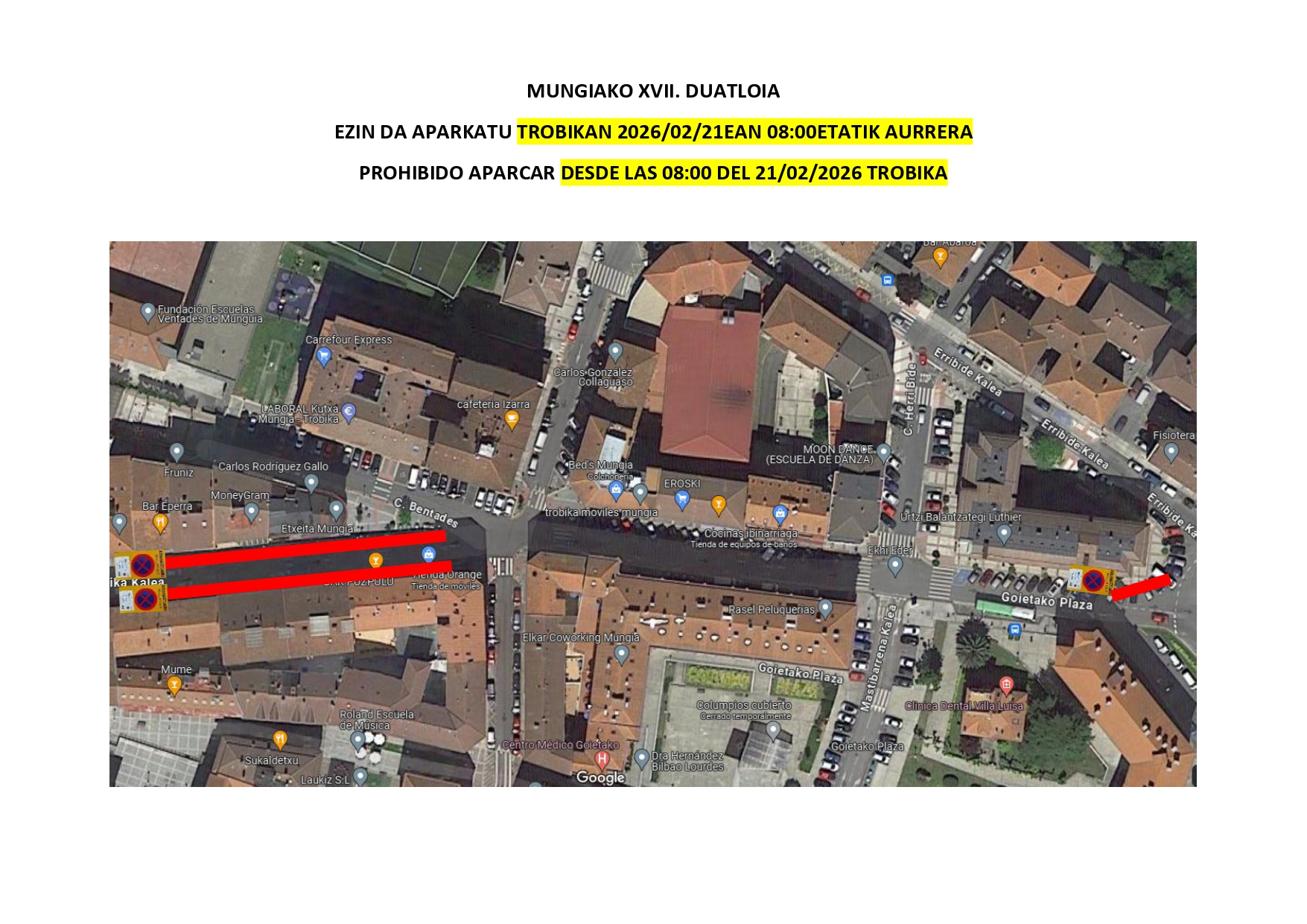 2026ko otsailaren 21ean ospatuko dan Mungiako XVII. Duatloia dala-eta, egongo diran trafiko-mozketen barri emoten dogu.