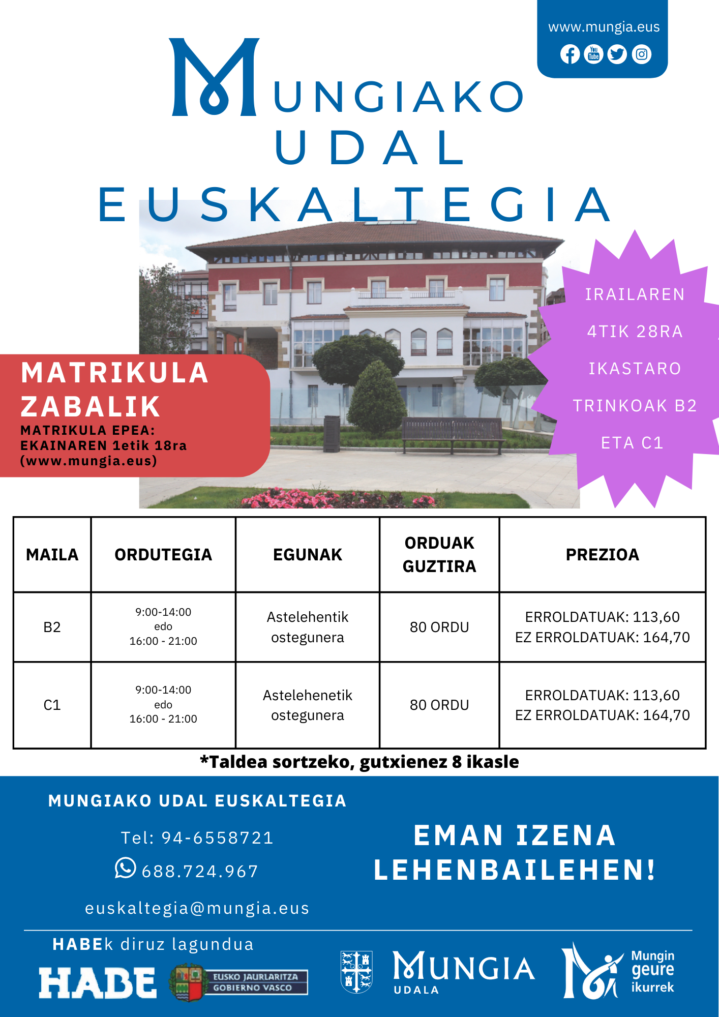 Eman izena: UDAL EUSKALTEGIA (IRAILEKO TRINKOAK) - Ayuntamiento de Mungia - mungia.eus