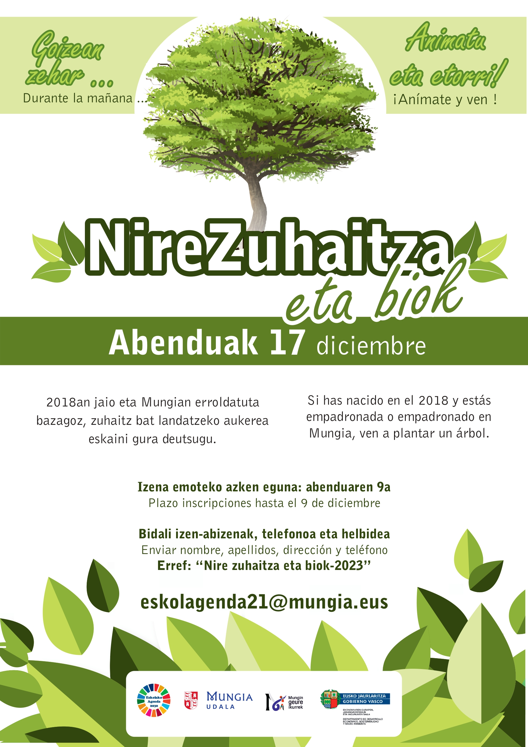 Mungiako haurrek zuhaitzak landatuko dituzte abenduaren 17an "Nire zuhaitza eta biok" udal ekimenaren bitartez
