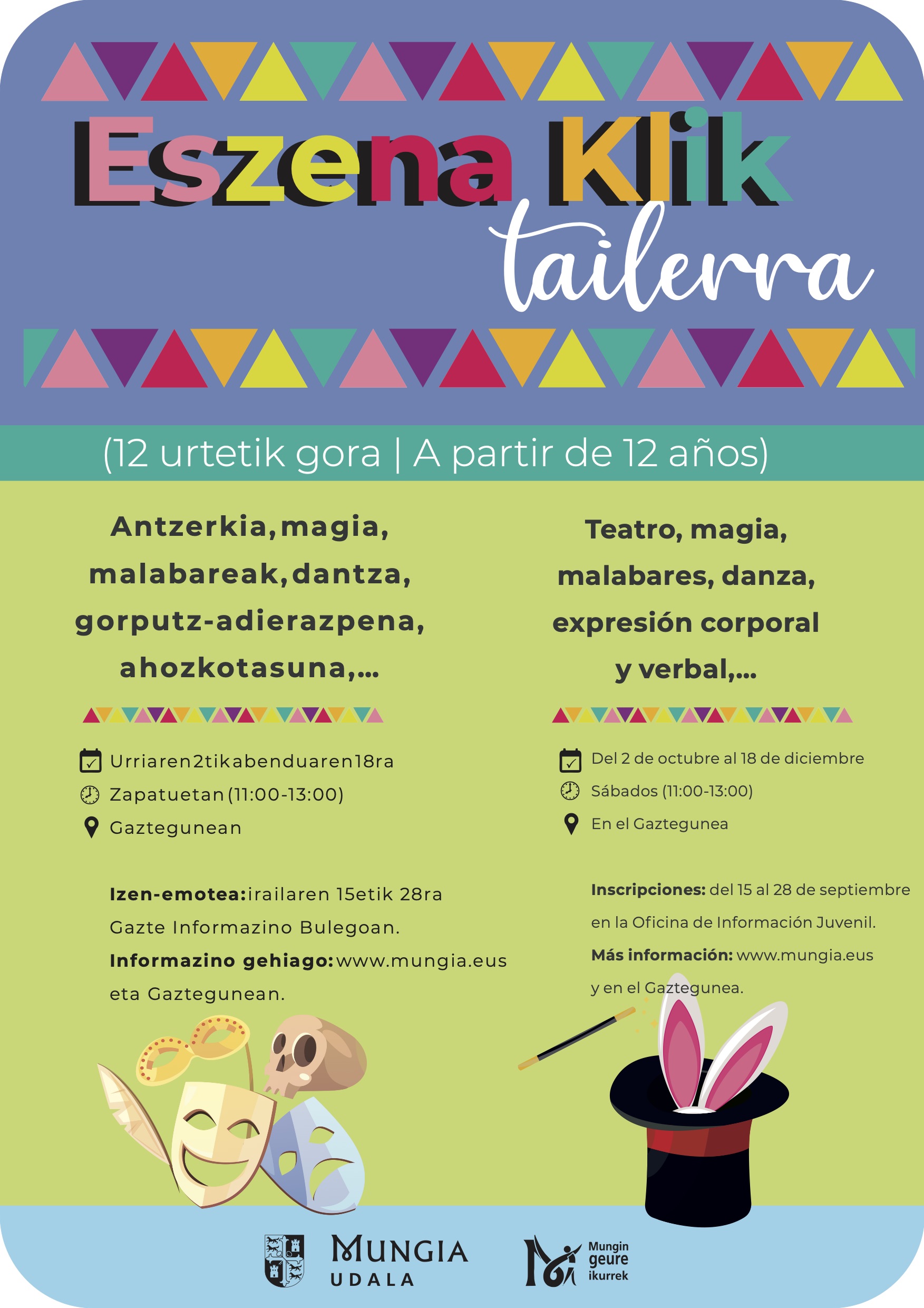 Antzerkia, magia, malabareak, dantza, gorputz-adierazpena, ahozkotasuna... Urriaren 2tik abenduaren 18ra, zapatuetan (11:00-13:00), Gaztegunean.