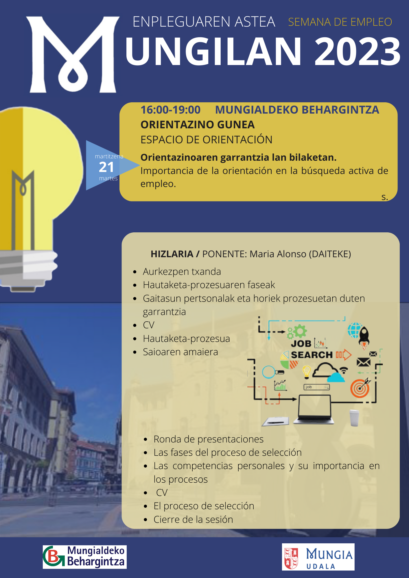 Azaroak 21 asteartea, arratsaldeko 16:00ak eta 19:00ak bitartean ORIENTAZIOAREN garrantzia landuko da Mungialdeko Behargintzan. Anima zaitez !!!